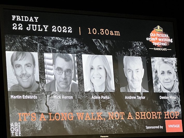In July I was at the Theakstons Old Peculier Crime Writing Festival in Harrogate, and I thoroughly enjoyed myself. It was my first major live festival since Covid struck, which made it special. That and the people, of course. You can see some of the riff-raff I had to consort with here: